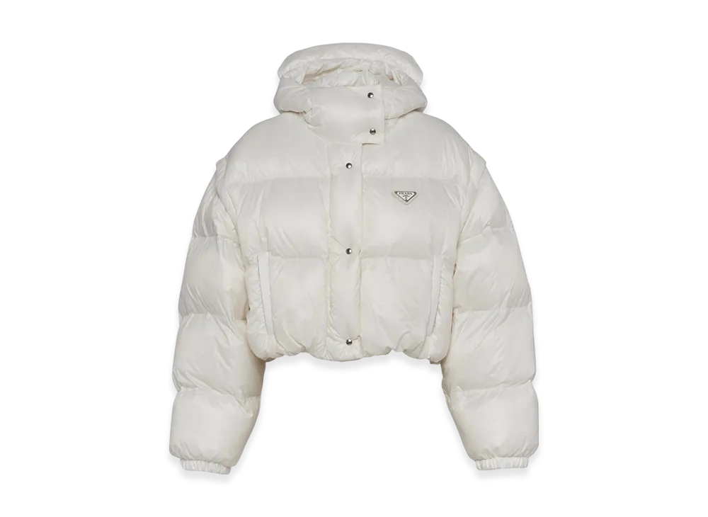 PRADA Women's Re-Nylon Cropped Convertible Down Jacket "White"