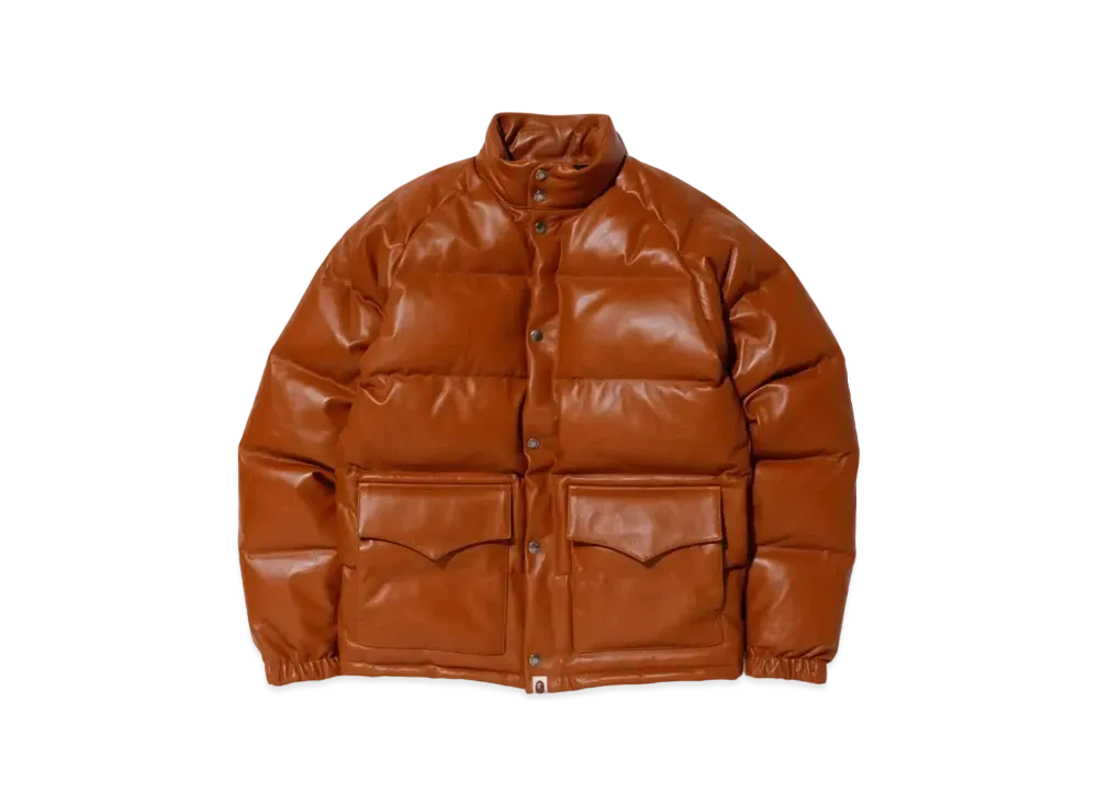 A BATHING APE LEATHER CLASSIC DOWN JACKET 20TH "Brown"