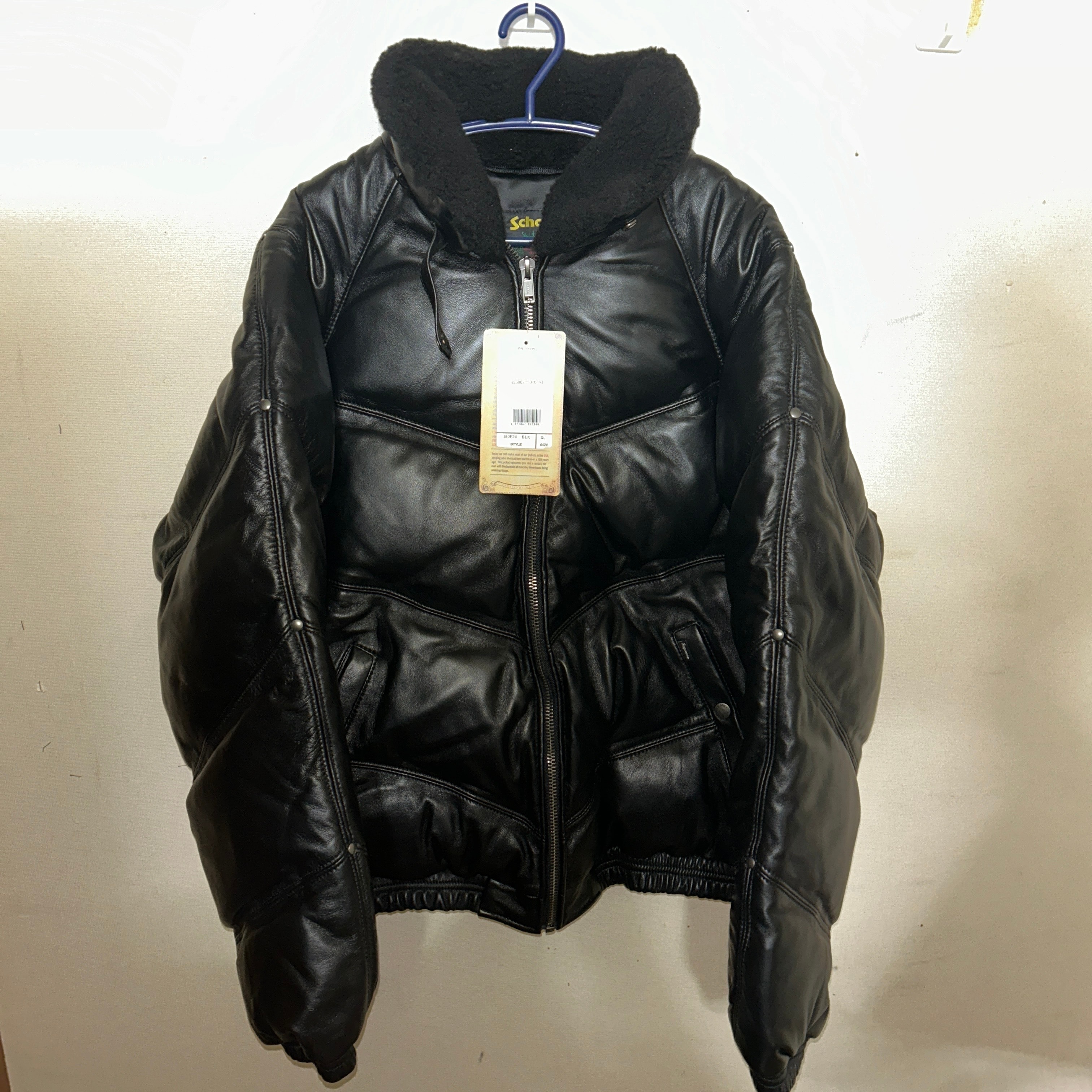 Supreme x Schott Chevron Leather Down Puffer Jacket "Black"