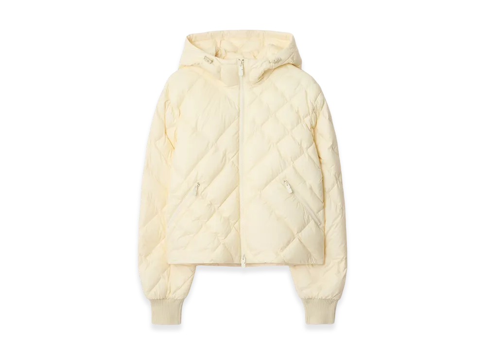 Burberry Women's Check Stitch Nylon Derry Down Jacket "Ceramic White"