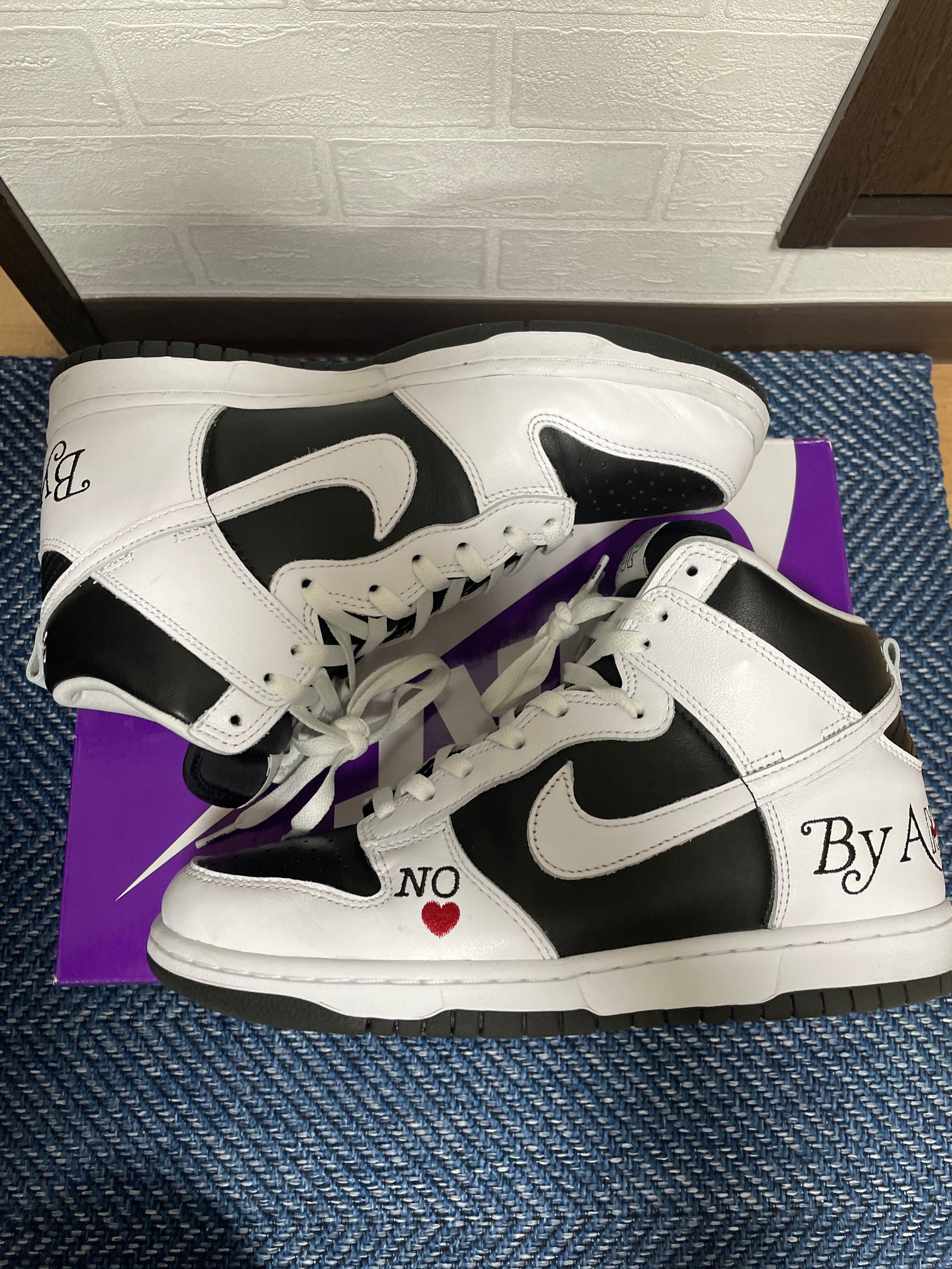 Supreme × Nike SB Dunk High By Any Means "White Black"