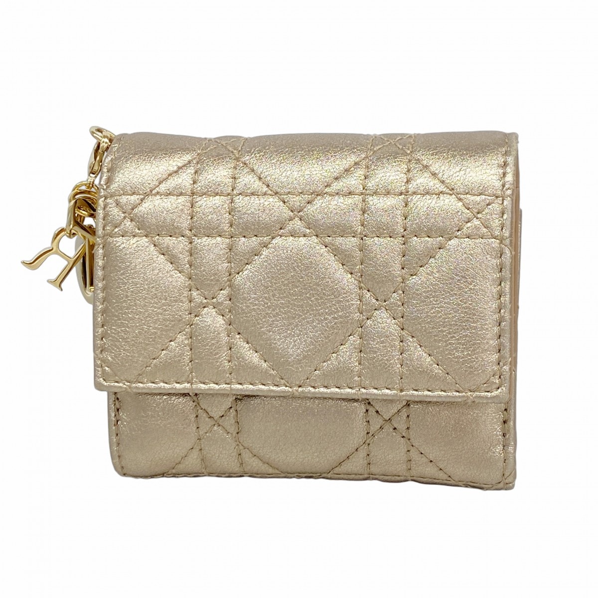 【6dc3032】クリスチャンディオール 三つ折り財布 カナージュ レディディオール レザー ゴールド ゴールド金具【中古】レディース