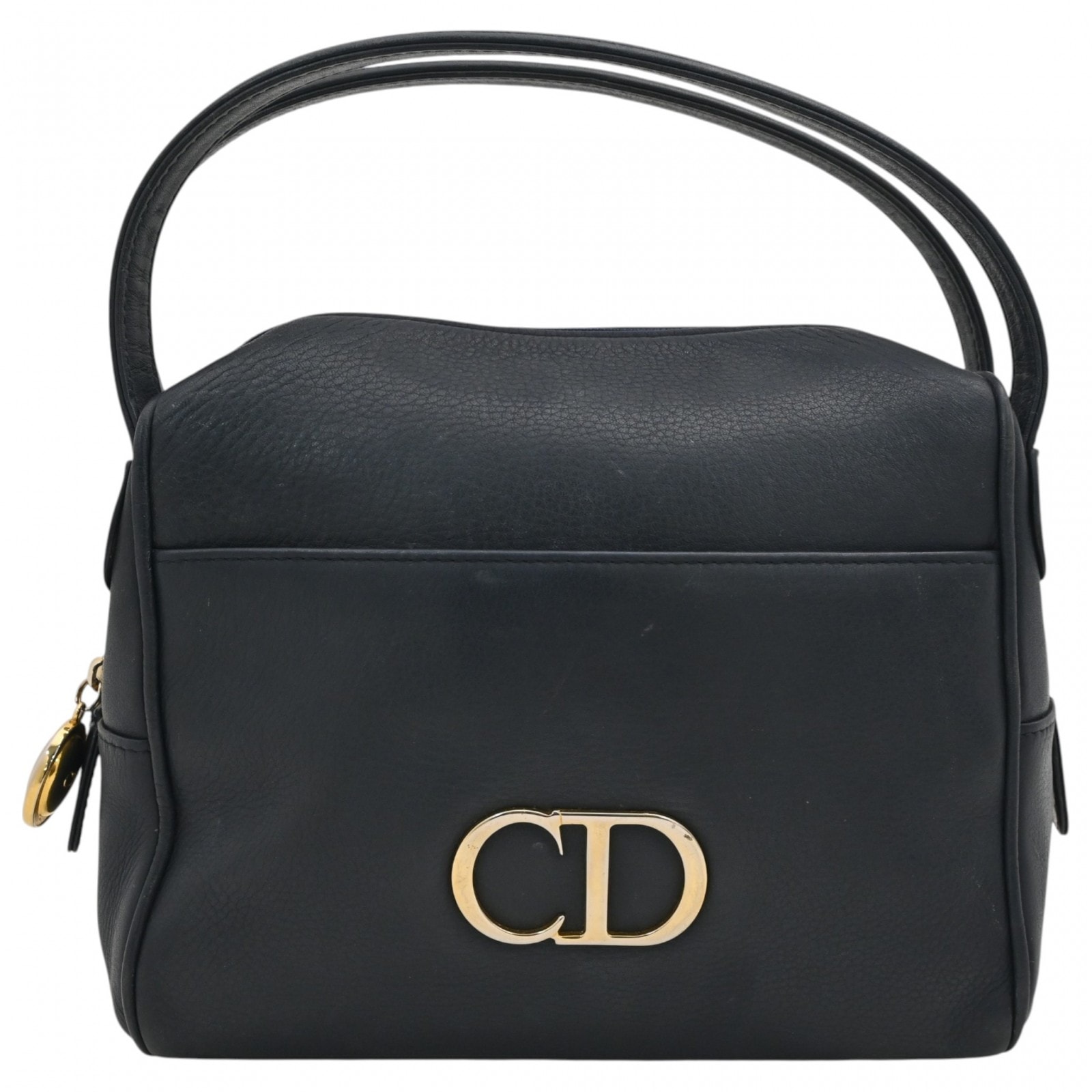 Dior ディオール ミニボストンバッグ トロッター柄 D金具 キャンバス ネイビー グレー ヴィンテージ レディース