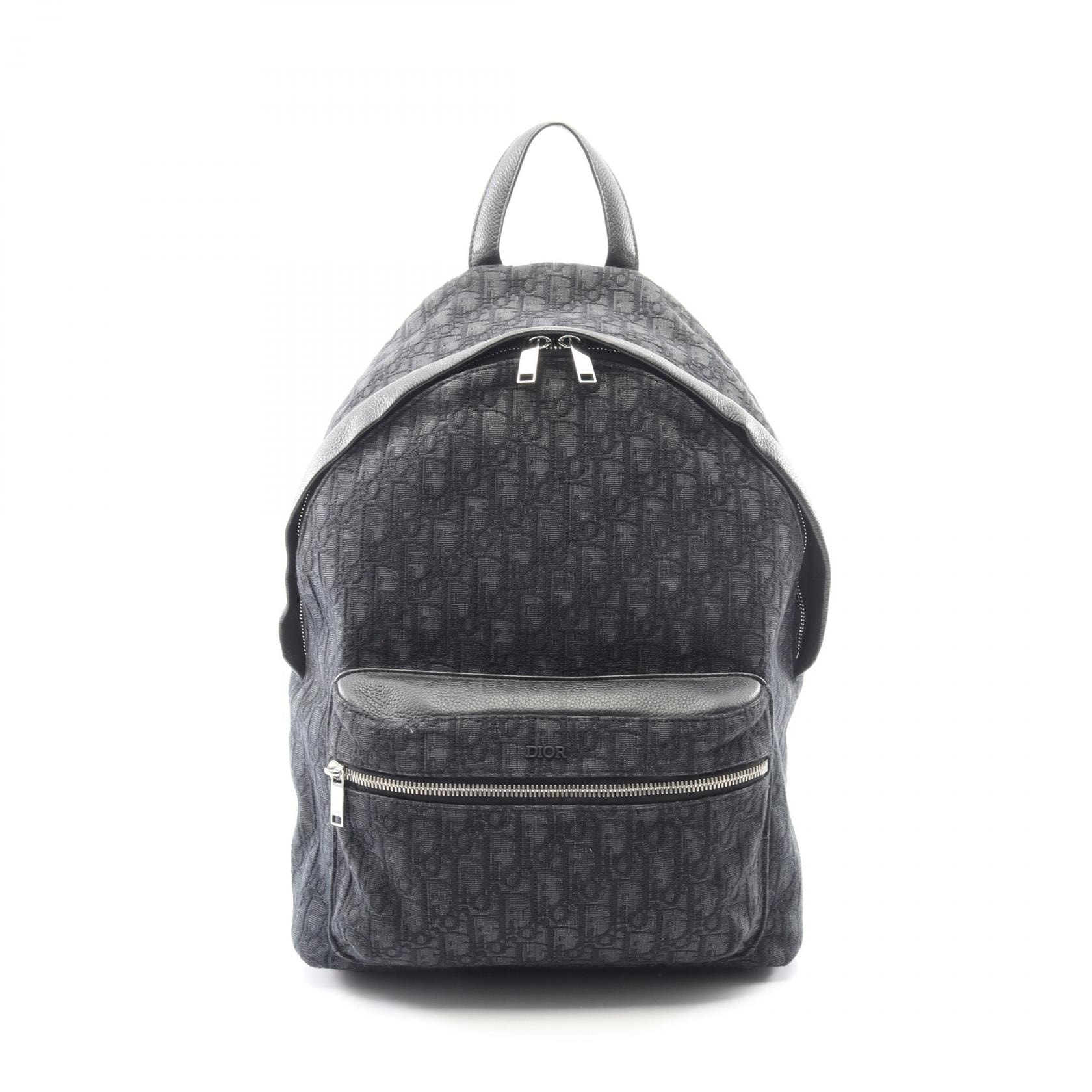 ディオール Dior オブリーク ジャカード リュックサック バックパック バッグ キャンバス レザー メンズ ブラック系 1VOBA088YKY 【中古】