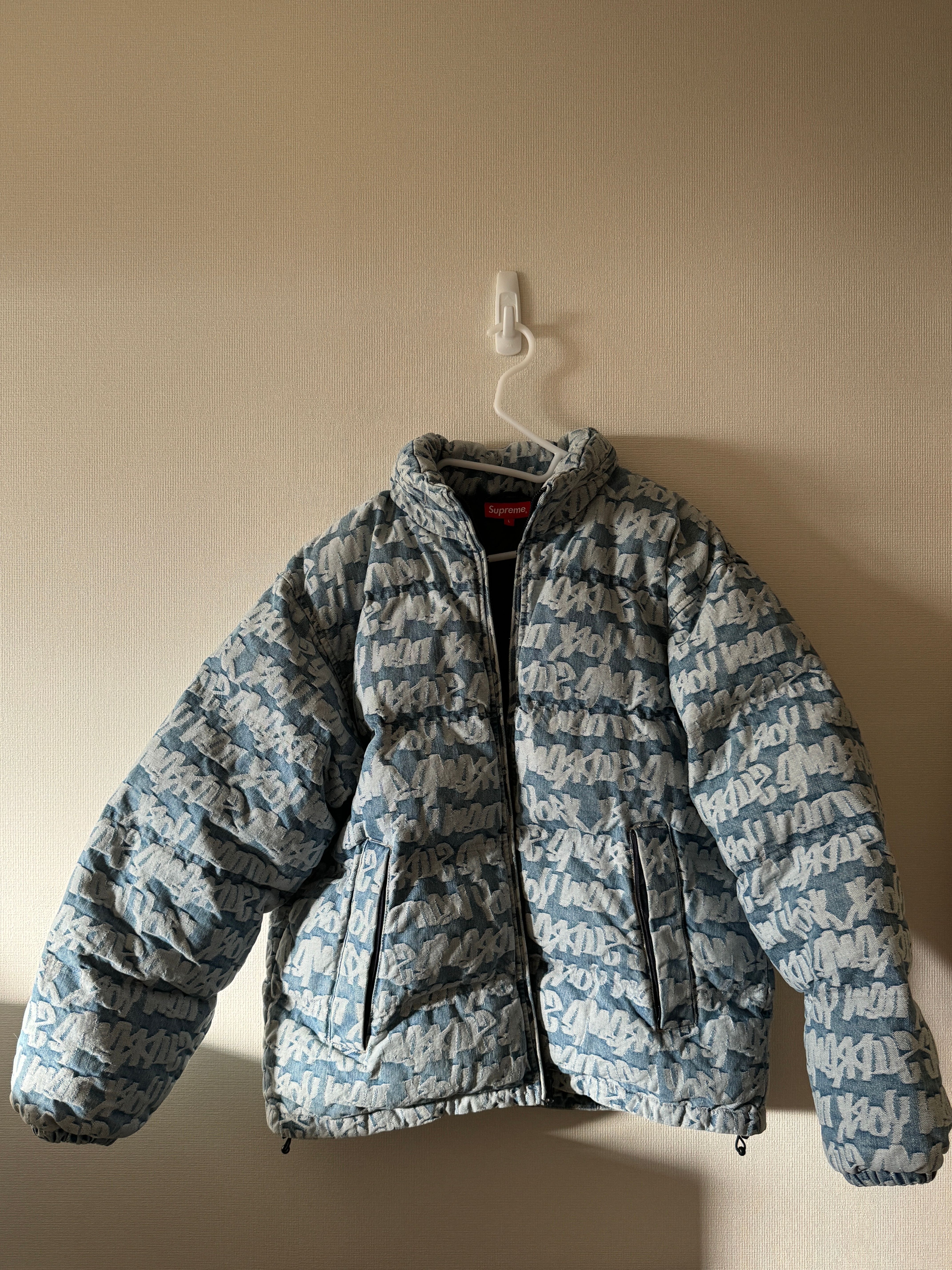 Supreme Fat Tip Jacquard Denim Puffer Jacket "Blue"