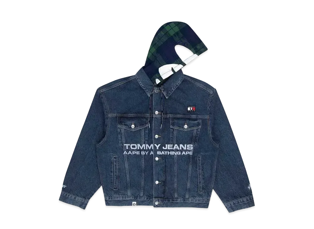 AAPE x Tommy Checked Hood 2WAY Denim Jacket "Demin"