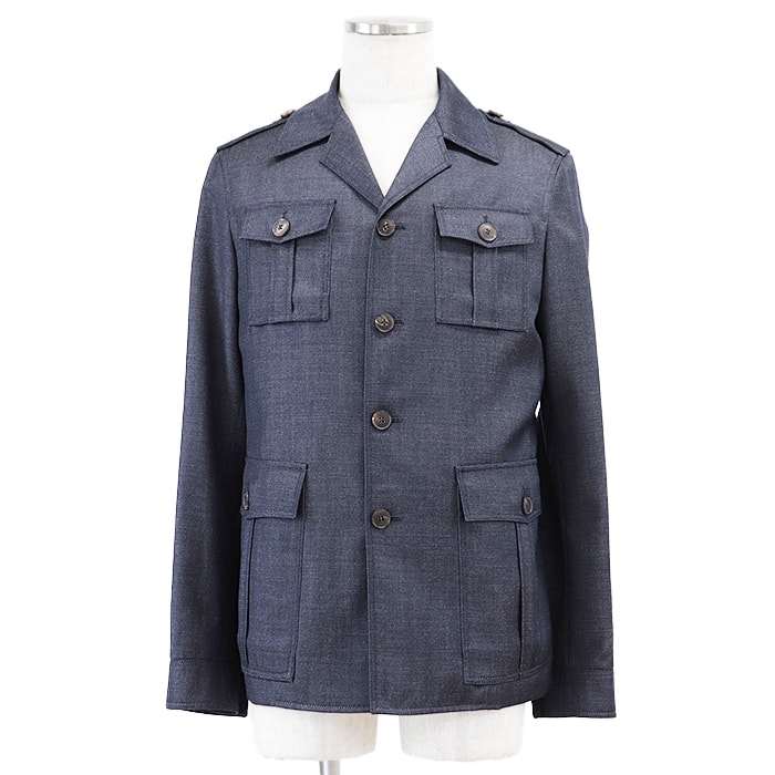 未使用 グッチ デニム サファリ M-65 ミリタリー ブルゾン ジャケット メンズ インディゴ 46 GUCCI