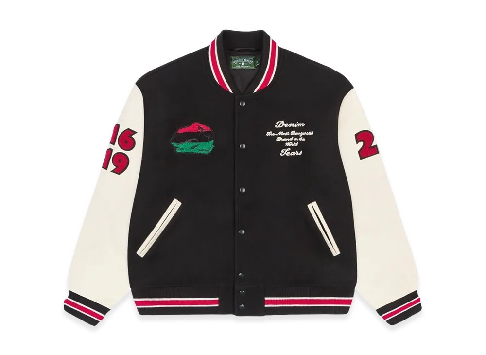 DENIM TEARS Peace Wreath Varsity Jacket "Black/White"
