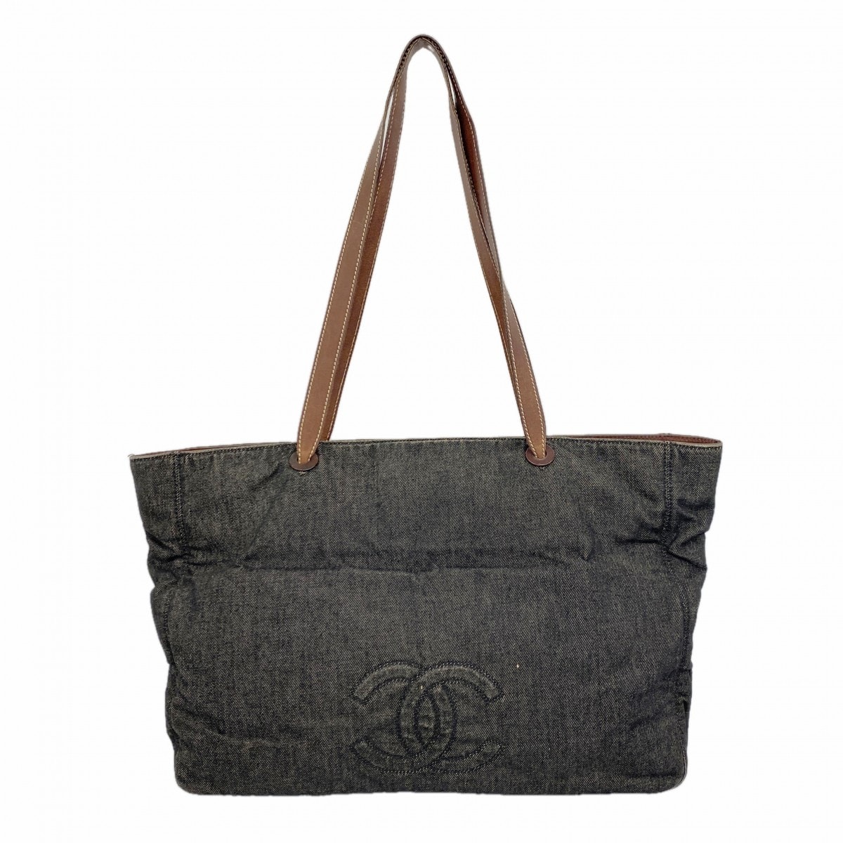 ★SALE【6db1388-k】シャネル トートバッグ デニム ブラック ブラウン ゴールド金具【中古】レディース