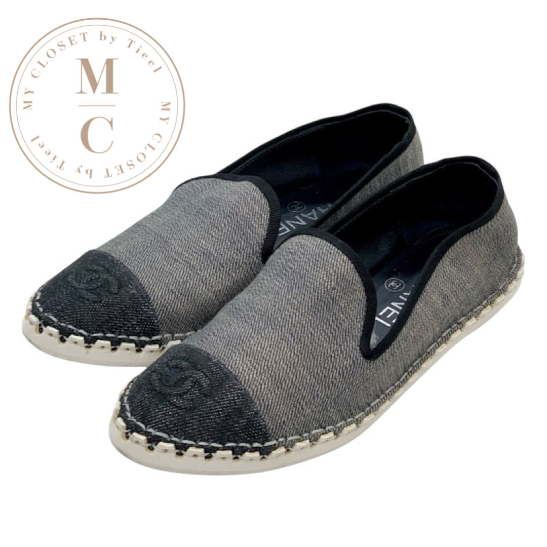 シャネル CHANEL フラットシューズ 靴 シューズ デニム グレー系 ブラック ココマーク