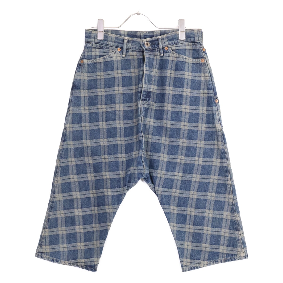 キャピタル ブルー チェック デニム サルエル パンツ XS