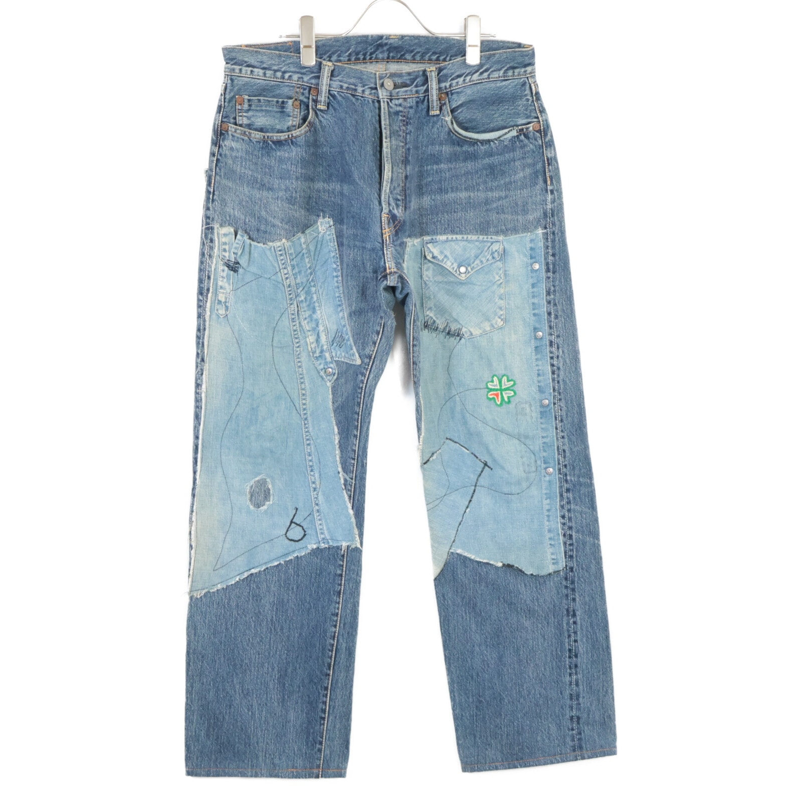 ヨウジヤマモト xSPOTTED HORSE CRAFT パッチワーク ボタンフライ デニムパンツ/ 36