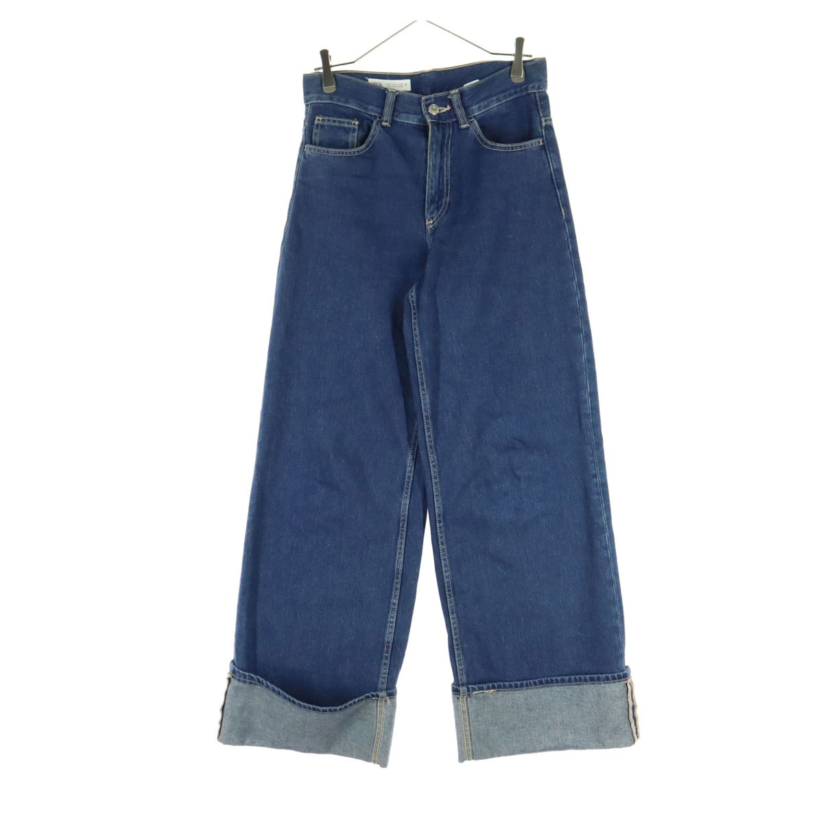 ZARA ザラ コットン ロールアップ ワイドデニムパンツ S ブルー系