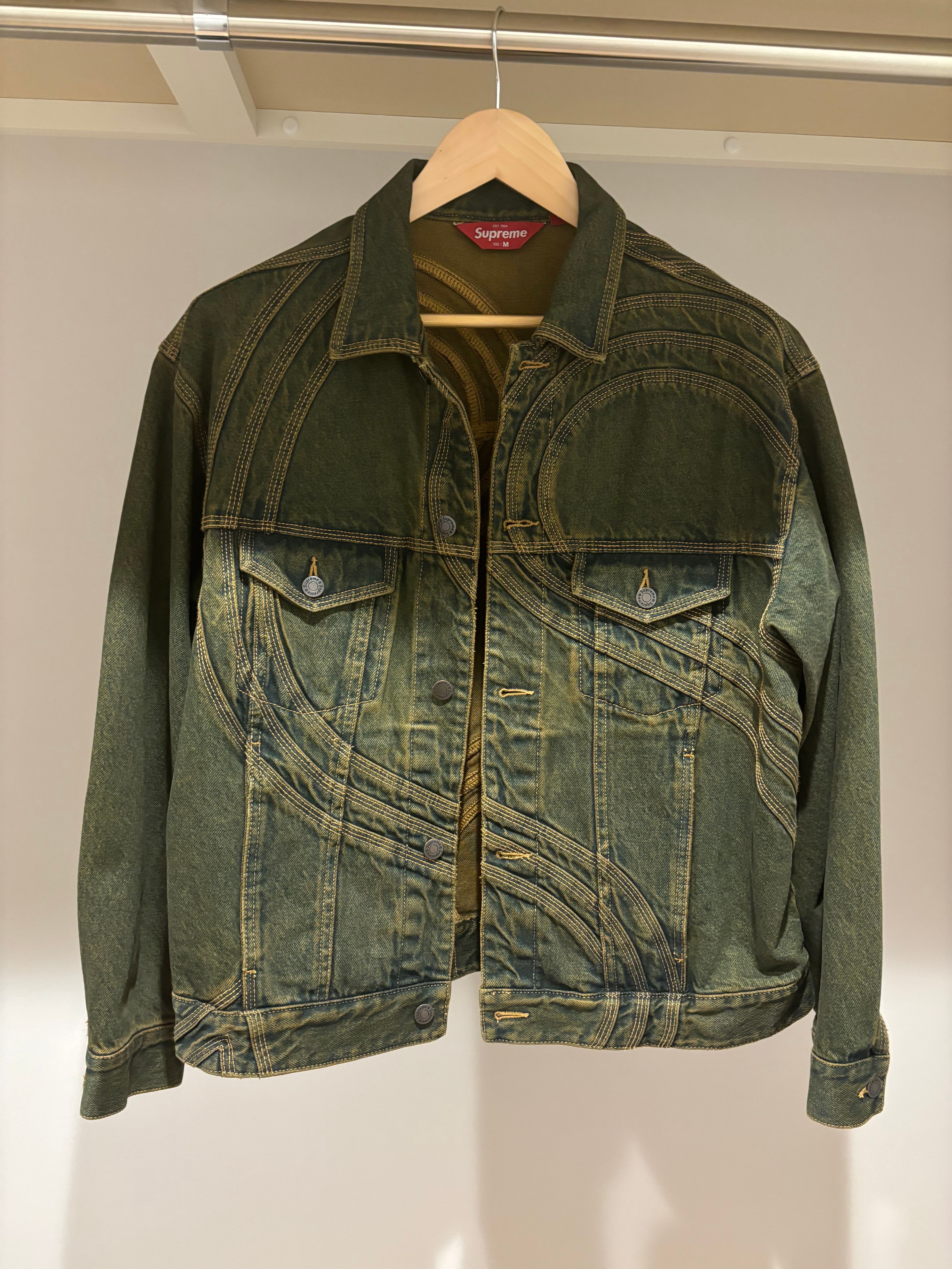 Supreme S Logo Denim Trucker Jacket "Dirty Green"