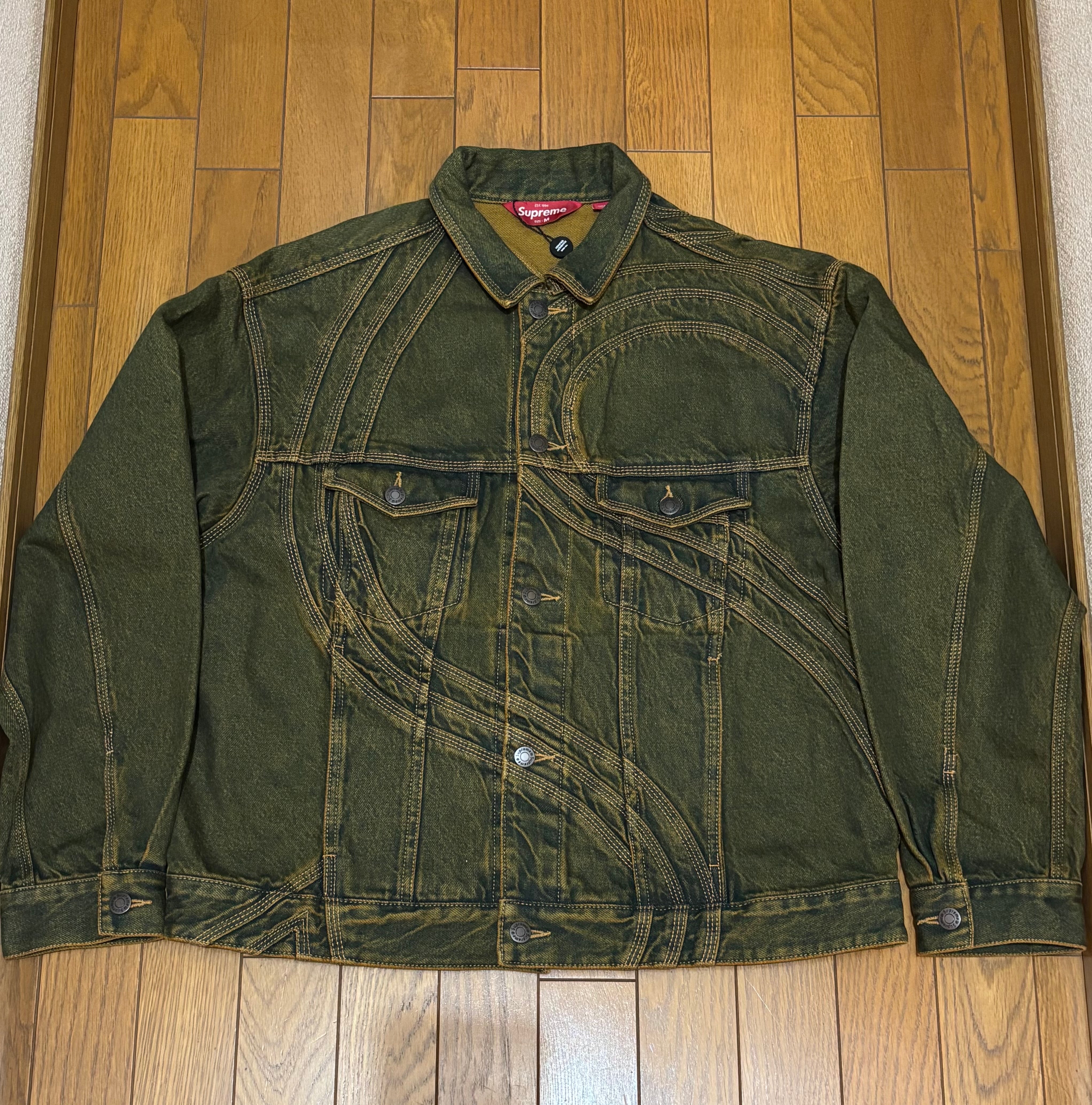 Supreme S Logo Denim Trucker Jacket "Dirty Green"