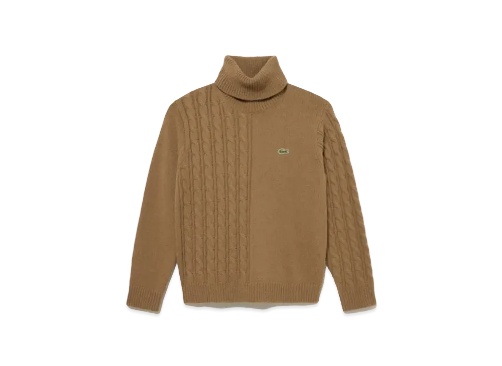 LACOSTE Asymmetry Turtle Neck Knit Sweater "Brown"