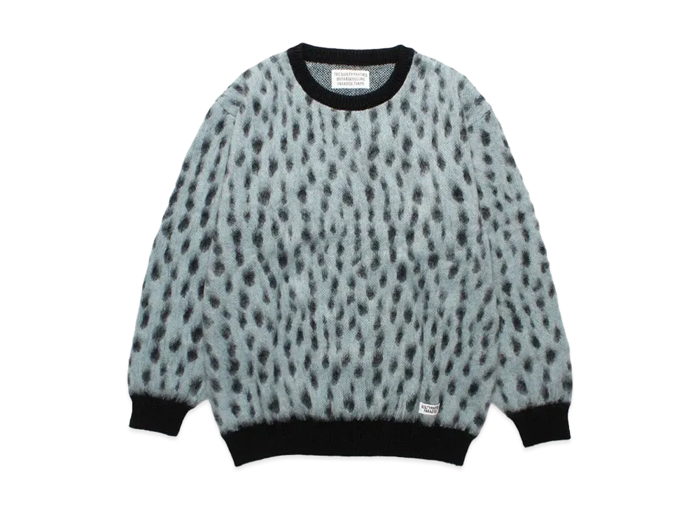 WACKO MARIA Leopard Jacquard Mohair Knit Sweater "Light Blue"