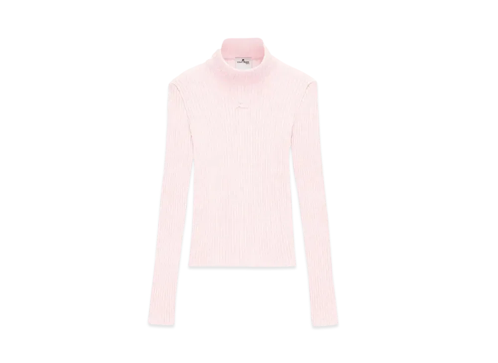 Courreges Reedition Rib Knit Mockneck Sweater "Pale Pink"