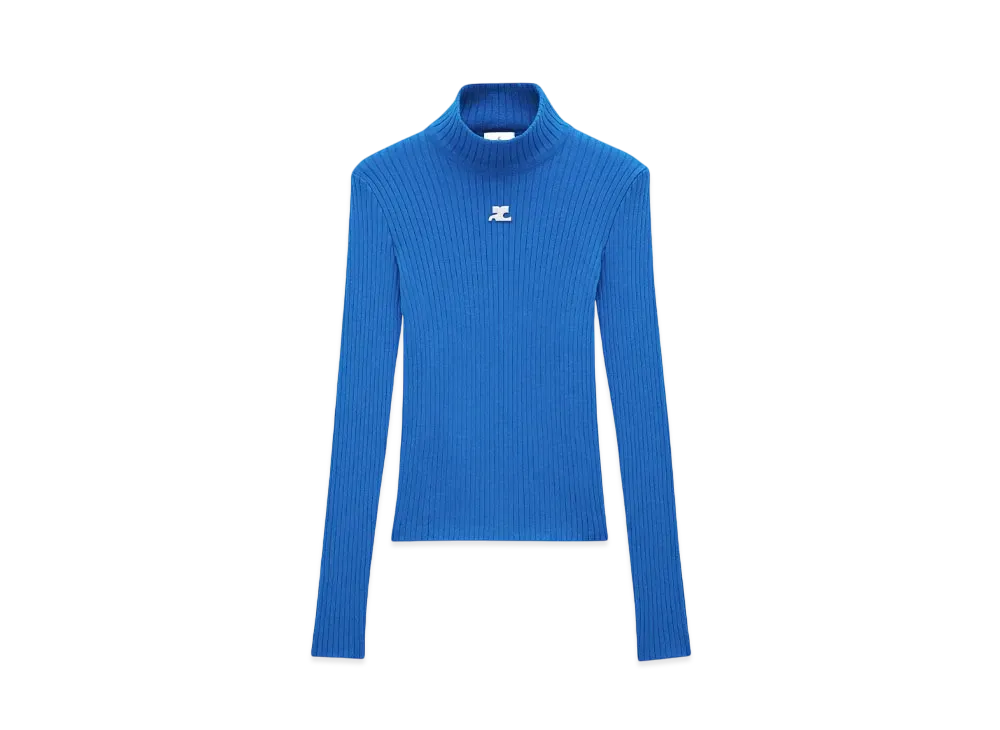 Courreges Reedition Rib Knit Mockneck Sweater "Blue"