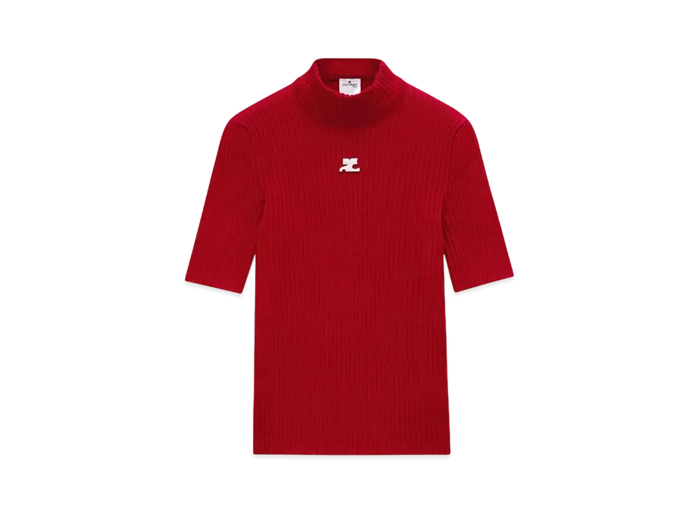 Courreges Reedition Short Sleeves Rib Knit Sweater "Red"
