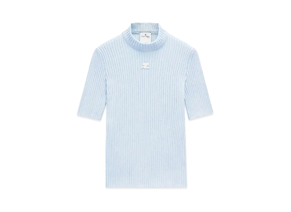 Courreges Reedition Short Sleeves Rib Knit Sweater "Sky"