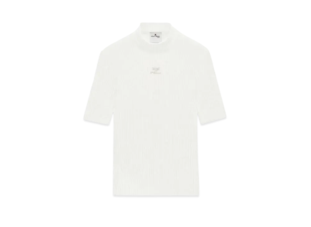 Courreges Reedition Short Sleeves Rib Knit Sweater "Heritage White"