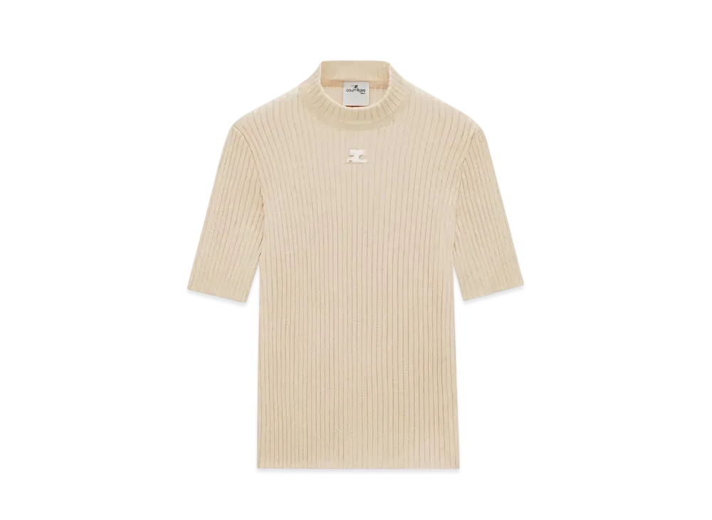 Courreges Reedition Short Sleeves Rib Knit Sweater "Sand"