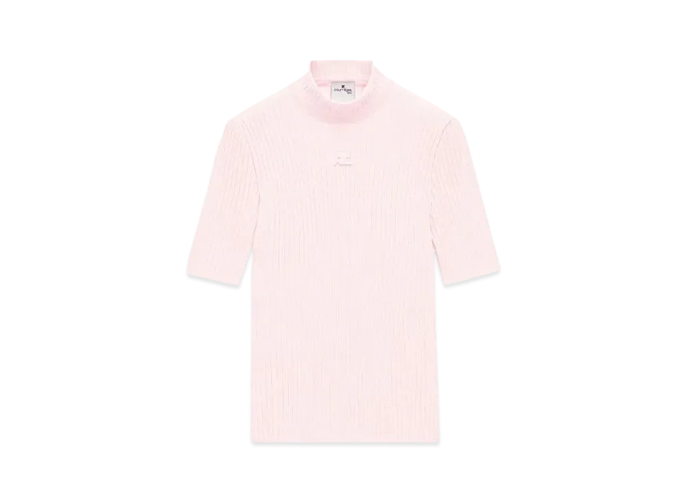 Courreges Reedition Short Sleeves Rib Knit Sweater "Pale Pink"