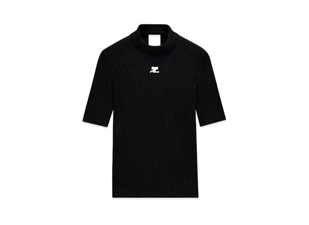Courreges Reedition Short Sleeves Rib Knit Sweater "Black"