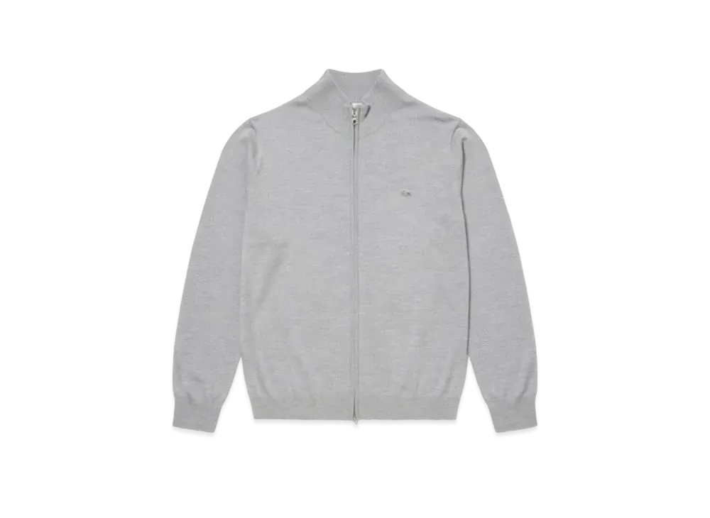 LACOSTE Washable Wool Zip Up Knit Sweater "Grey"