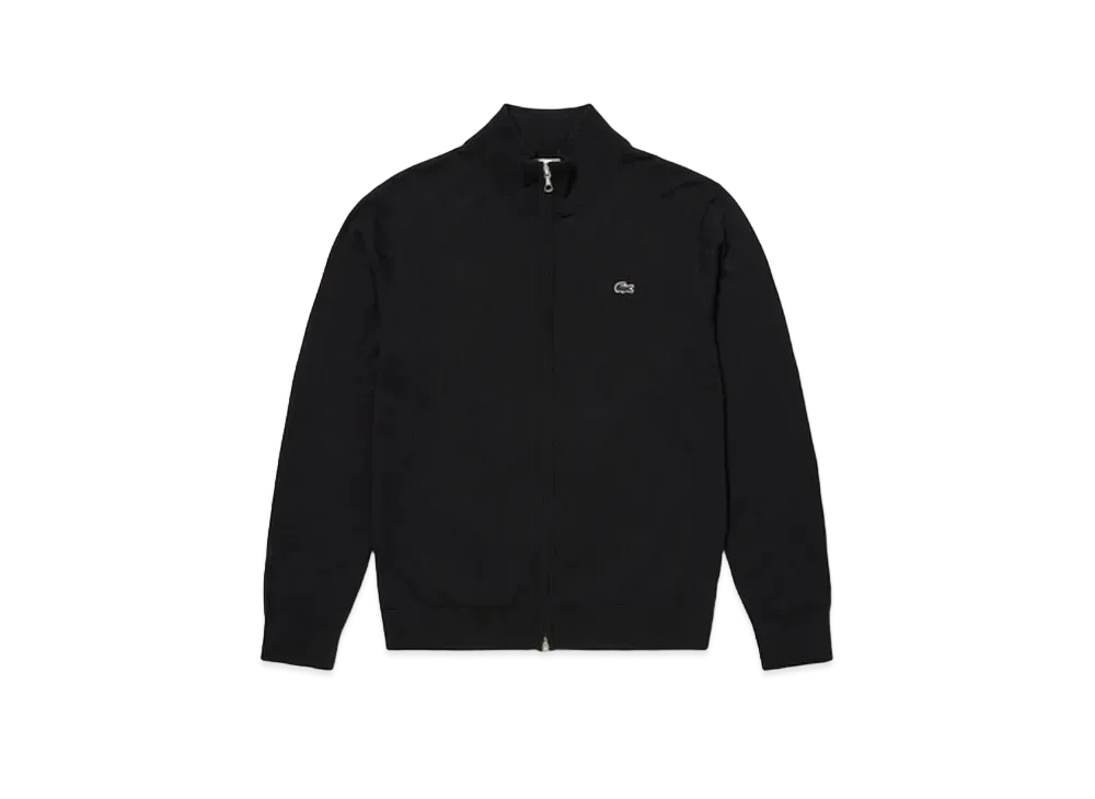 LACOSTE Washable Wool Zip Up Knit Sweater "Black"