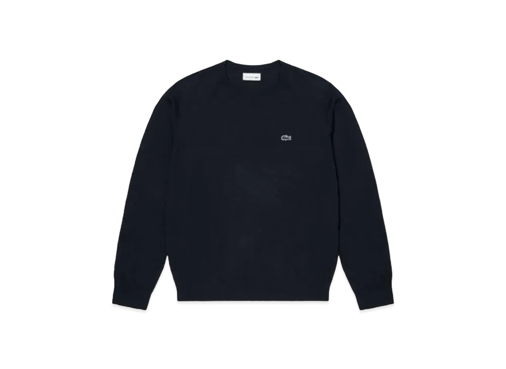 LACOSTE Washable Wool Crew Neck Knit Sweater "Navy"