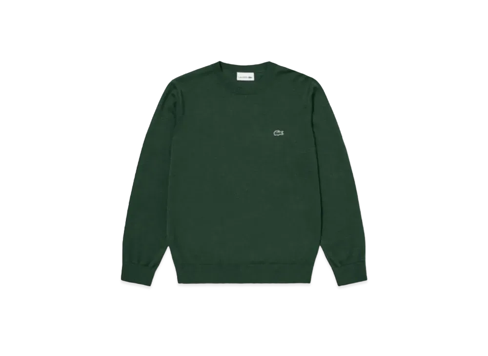 LACOSTE Washable Wool Crew Neck Knit Sweater "Green"