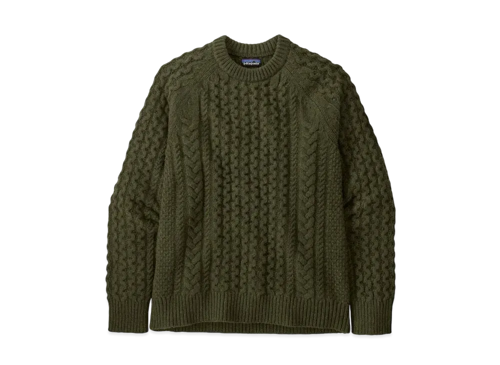 Patagonia Men's Recycled Wool Blend Cable Knit Crew Neck Sweater "Basin Green"