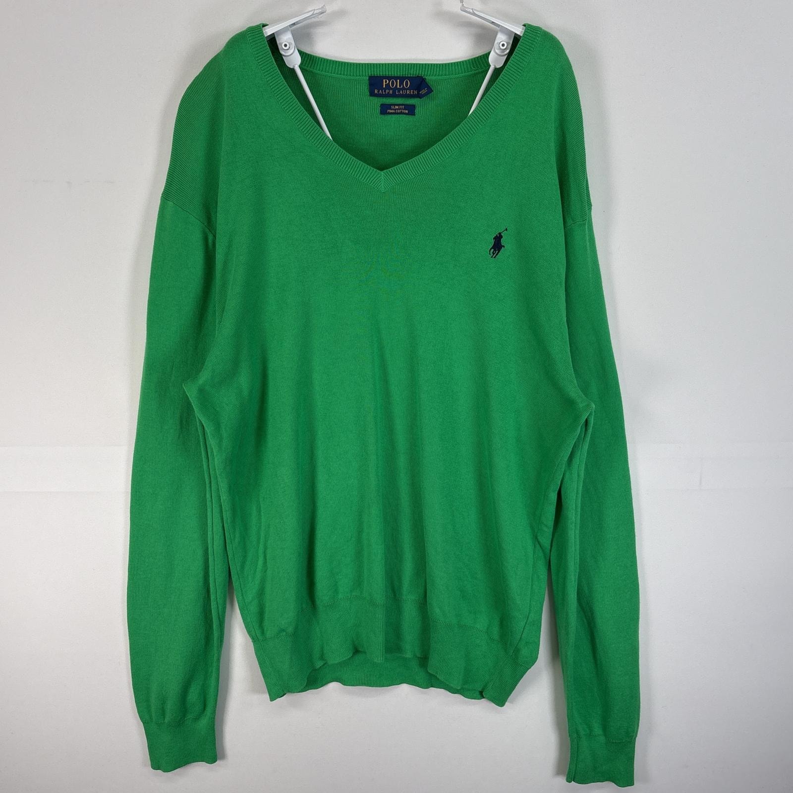 古着 ポロ・ラルフローレン POLO RALPH LAUREN 長袖 セーター Vネック ロゴ 刺繍 L グリーン 無地 メンズ