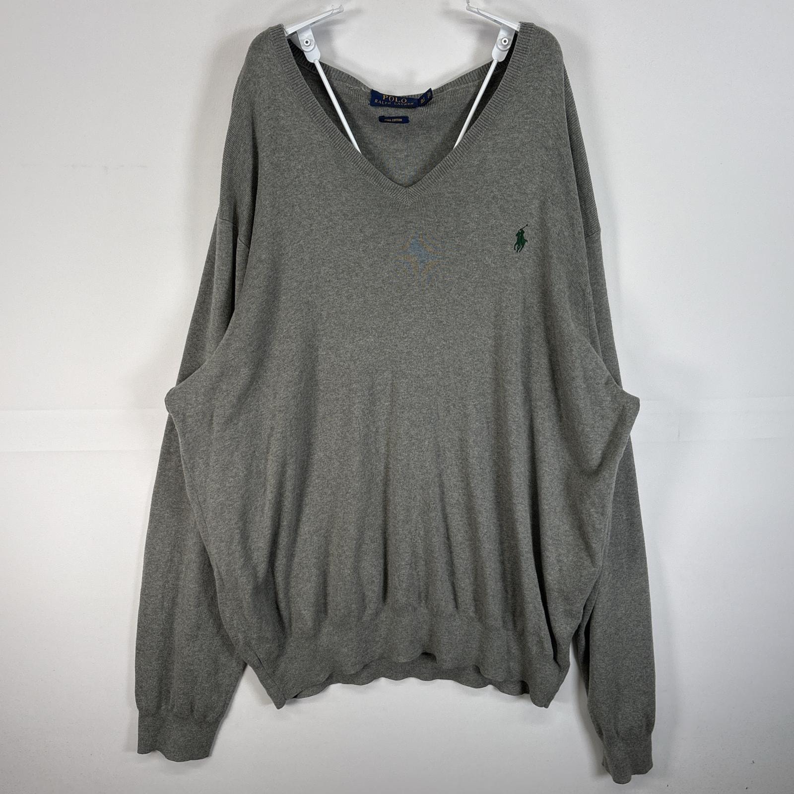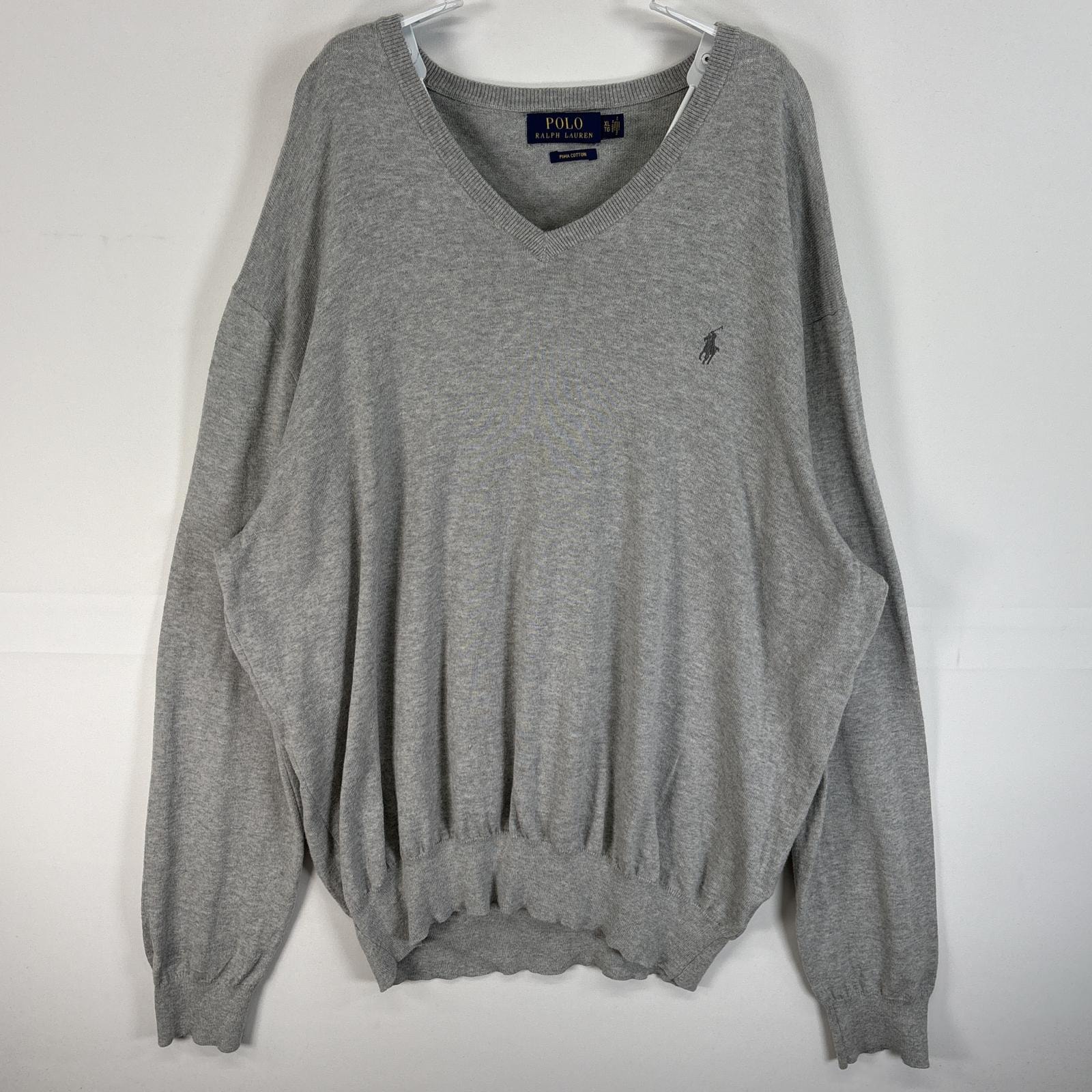 古着 ポロ・ラルフローレン POLO RALPH LAUREN 長袖 セーター Vネック ロゴ 刺繍 大きいサイズ XL グレー 無地 メンズ