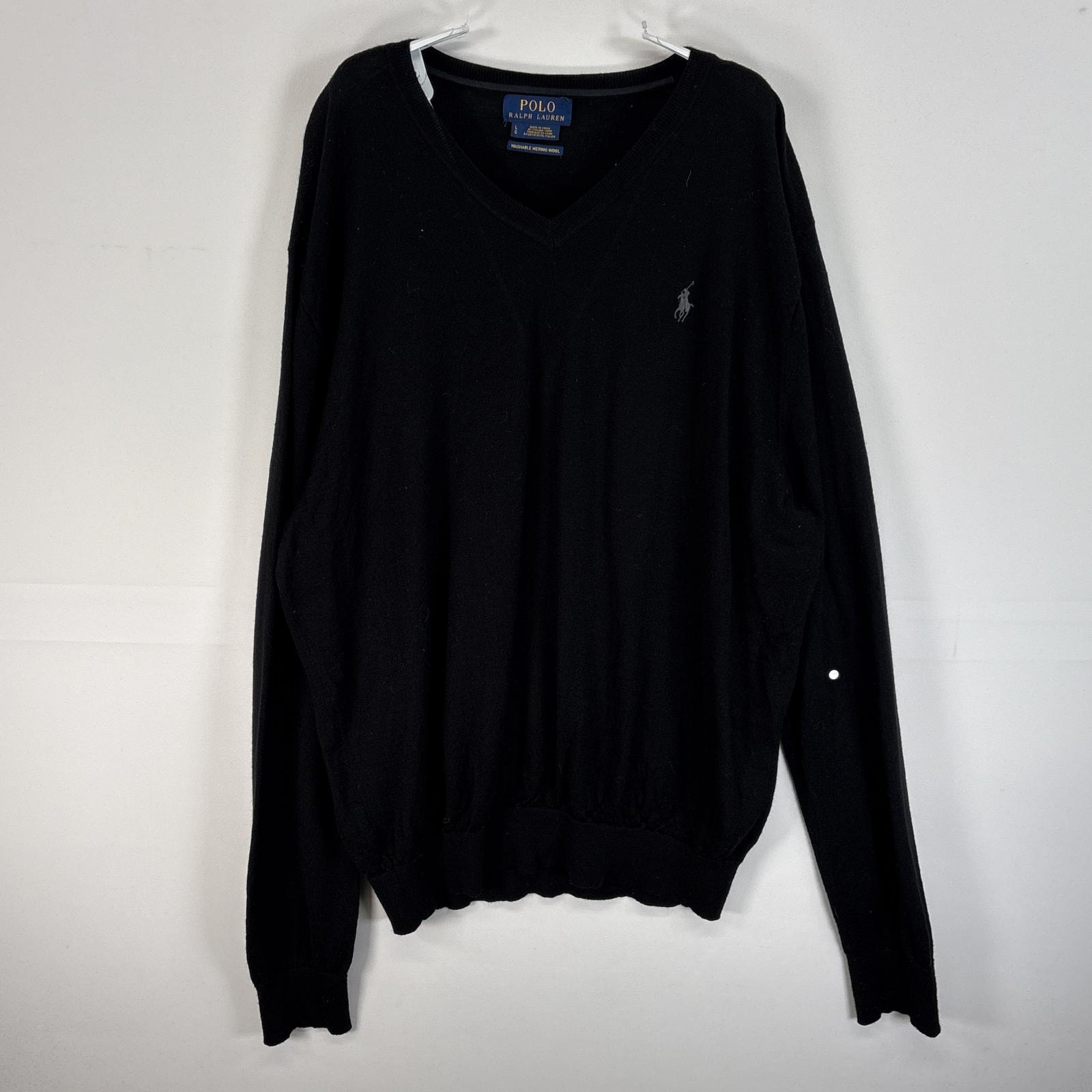 古着 ポロ・ラルフローレン POLO RALPH LAUREN 長袖 セーター Vネック メリノウール ロゴ 刺繍 L ブラック 無地 メンズ