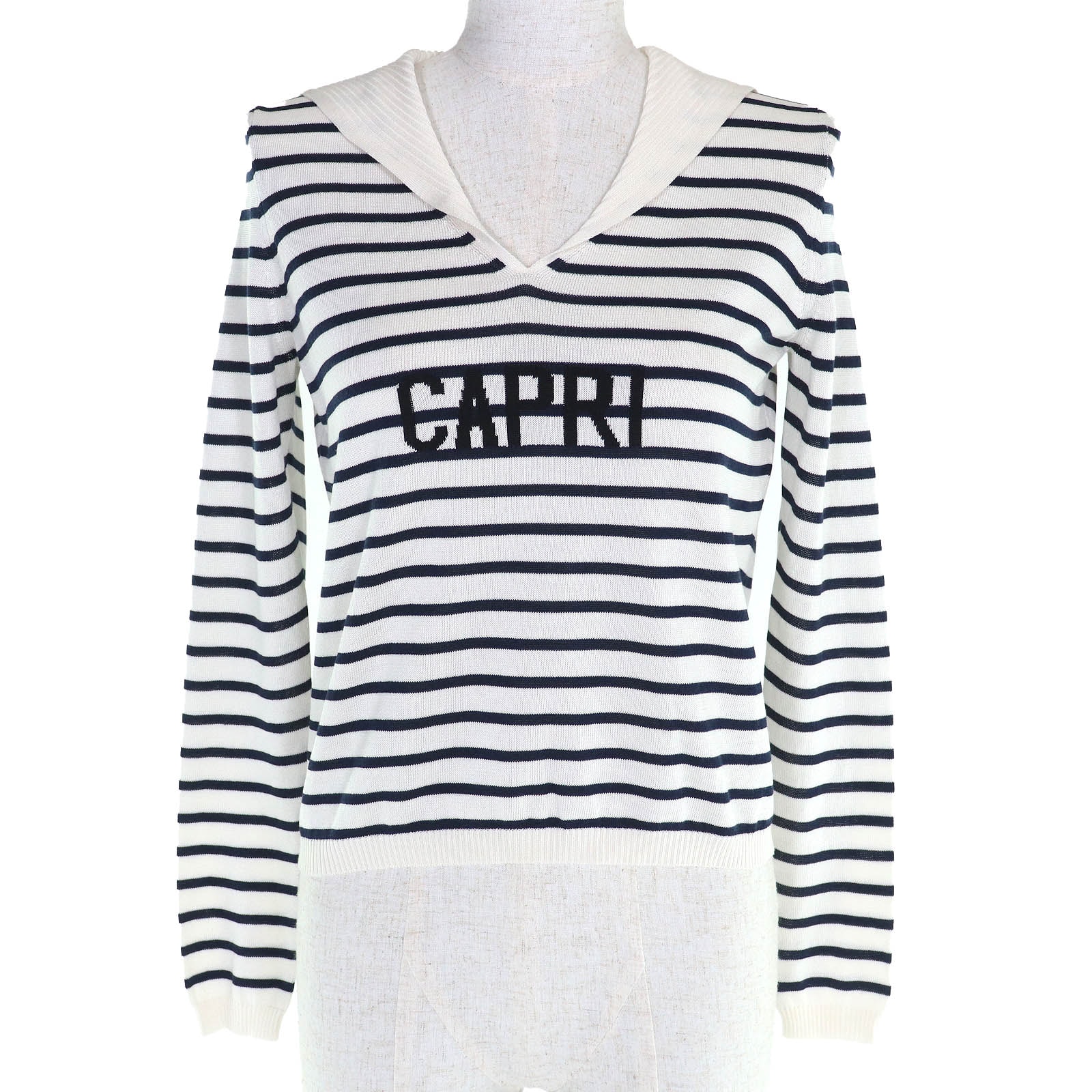 極美品 セリーヌ ニット オフホワイト ネイビー S 2ADLR888Z01MA