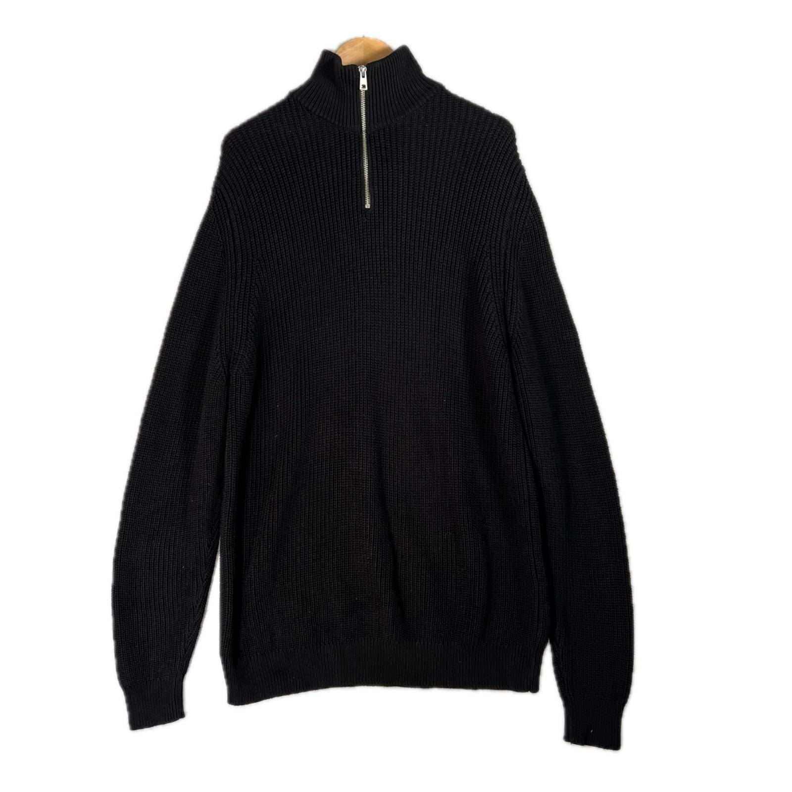 美品 ZARA ザラ 無地 秋冬 AW 長袖ニット コットン ブラック メンズ 42【古着】【中古】