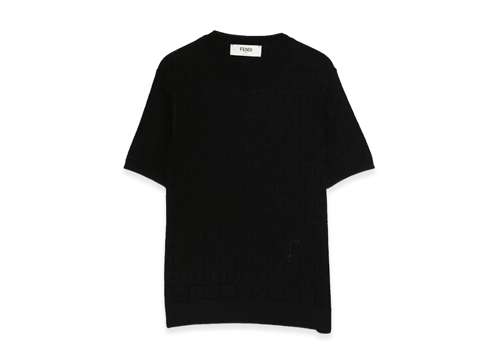 FENDI Women's Kids FF Intarsia Short Sleeve Sweater "Black"