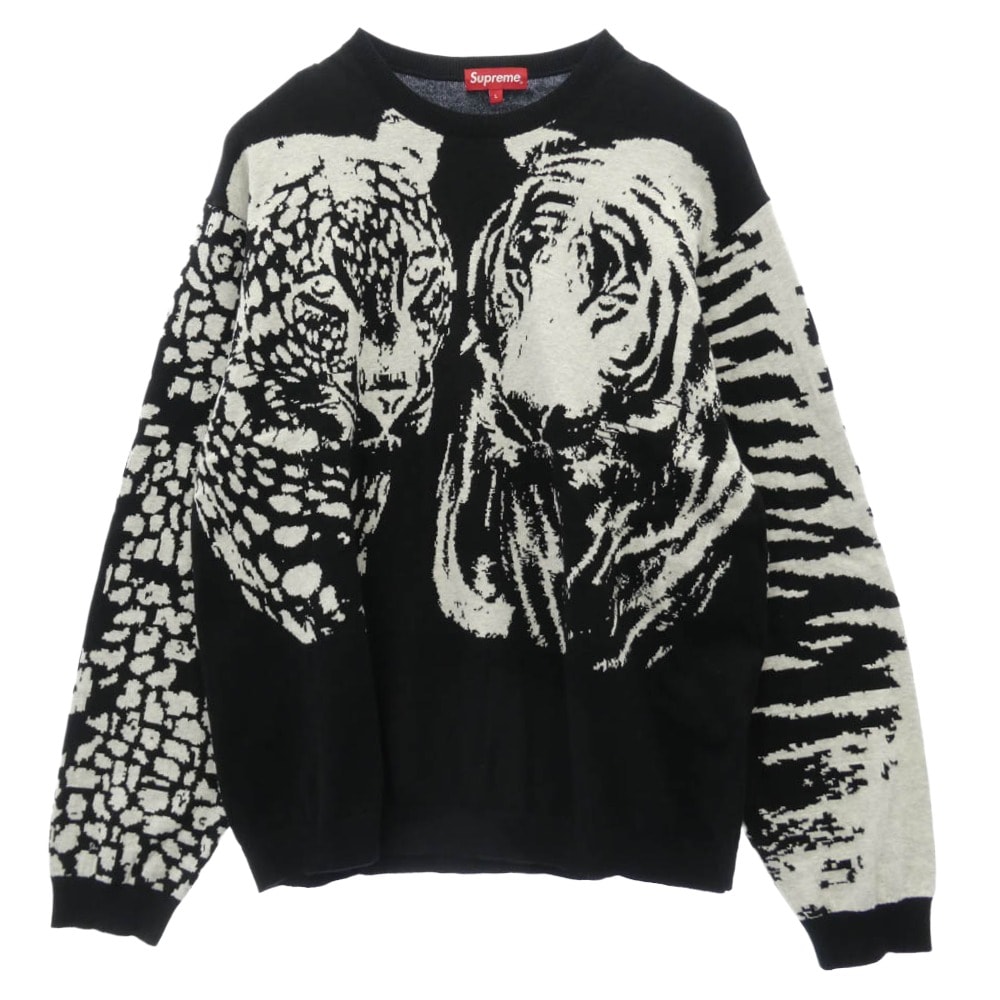 Supreme シュプリーム ニット 23SS Big Cats Jacquard L/S Top ビッグ キャッツ ジャカード ロングスリーブ トップ ニット ブラック系 L【中古】
