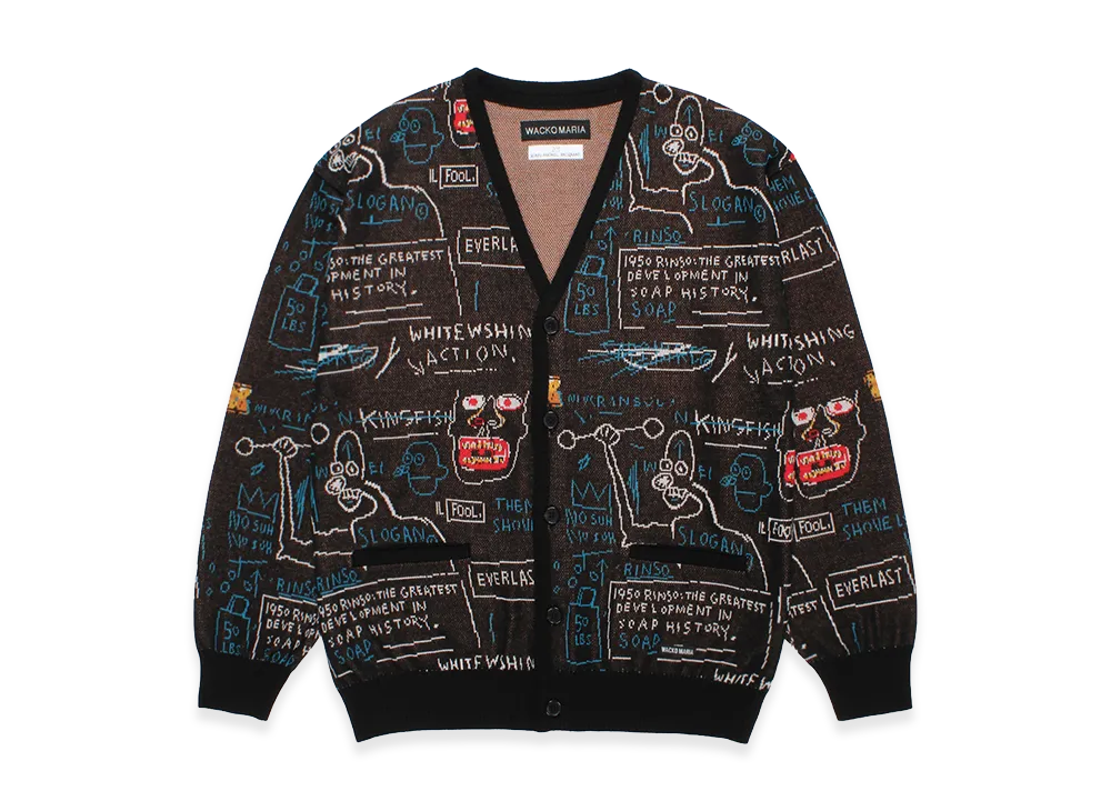WACKO MARIA x Jean Michel Basquiat Jacquard Knit Cardigan "Black"