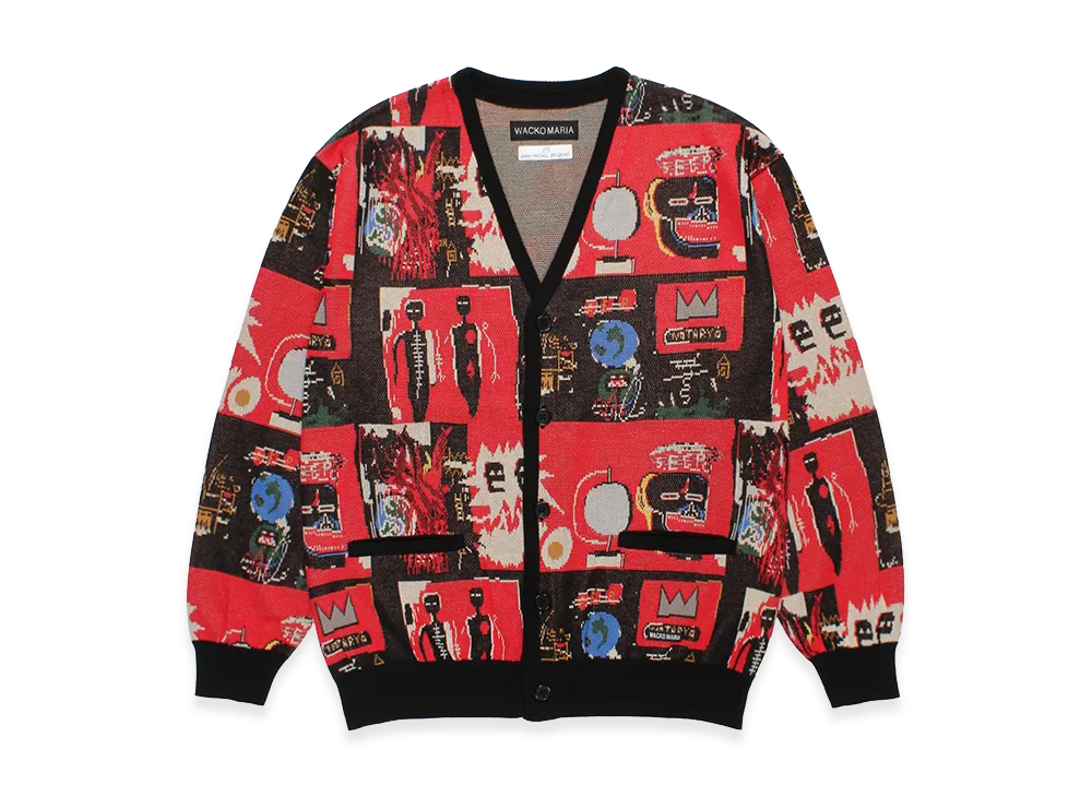 WACKO MARIA x Jean Michel Basquiat Jacquard Knit Cardigan "Red"