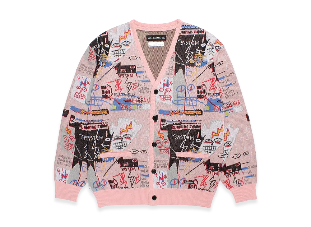 WACKO MARIA x Jean Michel Basquiat Jacquard Knit Cardigan "Pink"