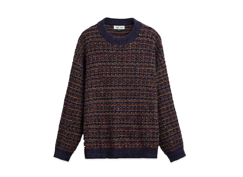 ZARA x MAISON SPECIAL Check Texture Sweater "Navy Blue"