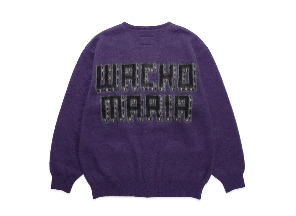 WACKO MARIA Logo Mohair Knit Jacquard Cardigan "Purple"