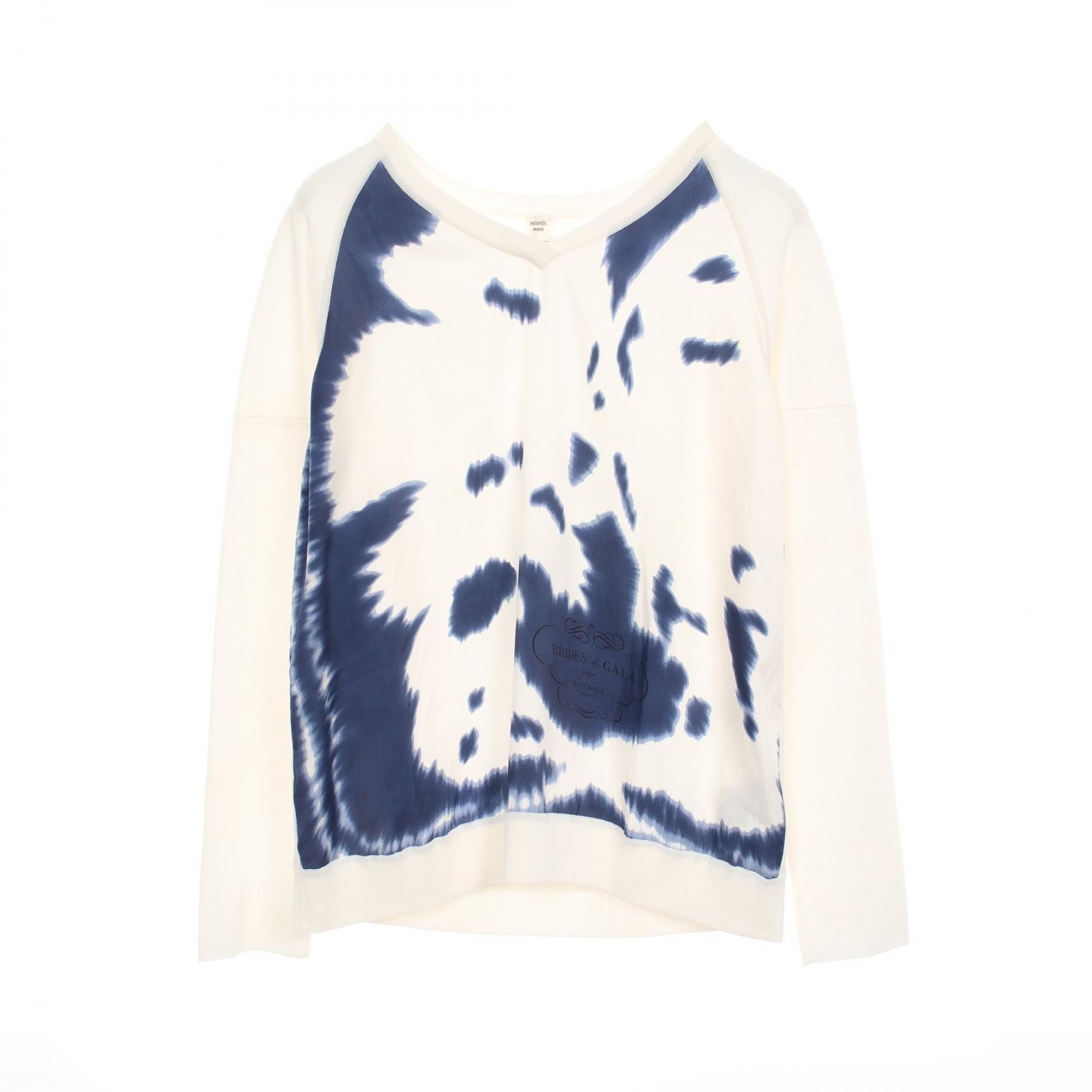 エルメス HERMES ツイルレーヌ BRIDES de GALA par ニット 衣料品 トップス コットン シルク シルク ホワイト レディース ホワイト系 / ブルー系 【中古】