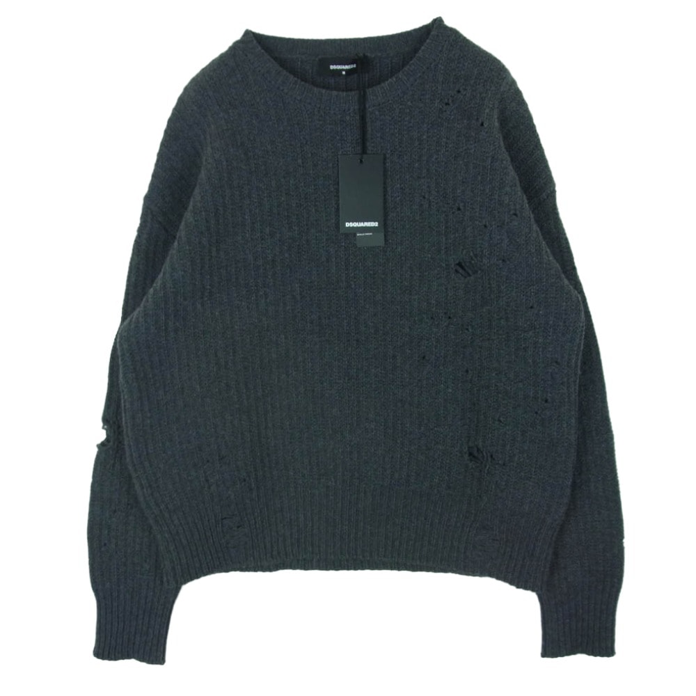 DSQUARED2 ディースクエアード S74HA1173 ウール クラッシュ ダメージ加工 ニット イタリア製 グレー系 M【美品】【中古】