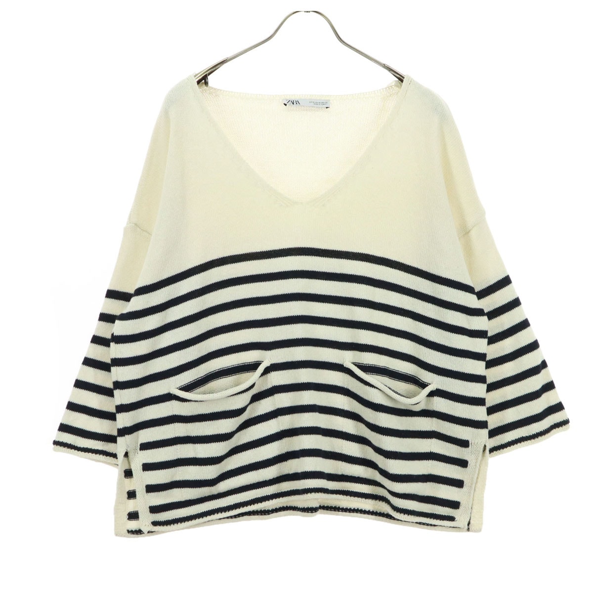 美品 ZARA ザラ ボーダー柄 長袖 セーター M ホワイト