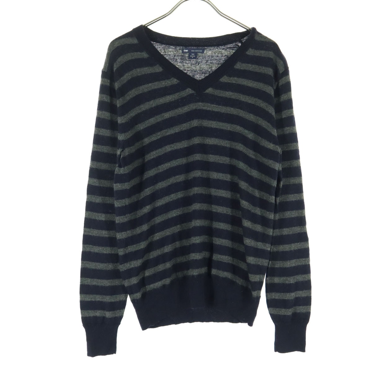 GAP ギャップ ウール ボーダー バイカラー 長袖 Vネック セーター S ネイビー